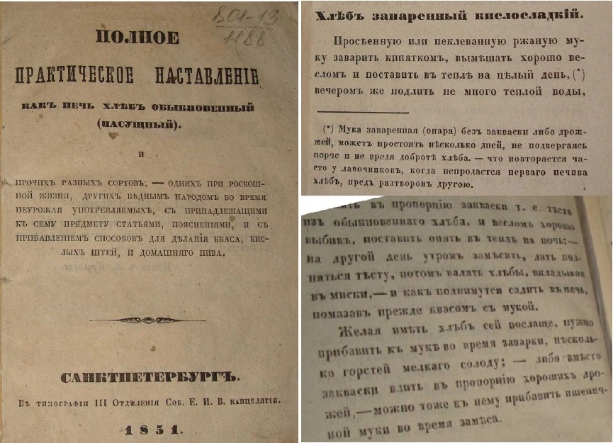 Впрочем, нужно сказать, что версия о вдове генерала Тучкова не имеет никаких документальных подтверждений. То есть она действительно основала монастырь и стала потом его настоятельницей. Очевидно, какой-то хлеб выпекался в этом монастыре, также, как и любом другом по всей России. Однако никаких указаний относительно его рецептуры (кроме того, что он был черным) не сохранилось. В этой связи мы можем ориентироваться на книги той эпохи. В частности, изданные в 1851 году «Практические наставления как печь хлеб обыкновенный» приводят рецепт ржаного запаренного кисло-сладкого хлеба, напоминающего рецепт бородинского: