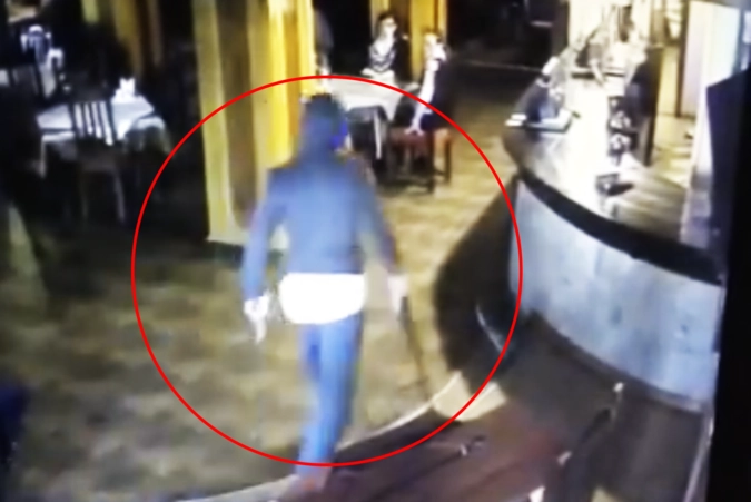 На видео нападения, которое через какое-то время появилось в Сети, видно, как вооруженный человек в куртке с капюшоном вошел в зал ресторана. За ним направился мужчина в синей футболке, сидевший за столиком у входа. Они скрываются в глубине зала, и через несколько мгновений начинается стрельба, а люди в панике разбегаются.
