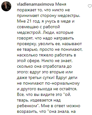 Пользователи Instagram, посмотревшие видео, в основном осуждали действия медсестры, покритиковав и автора ролика за «бездействие».