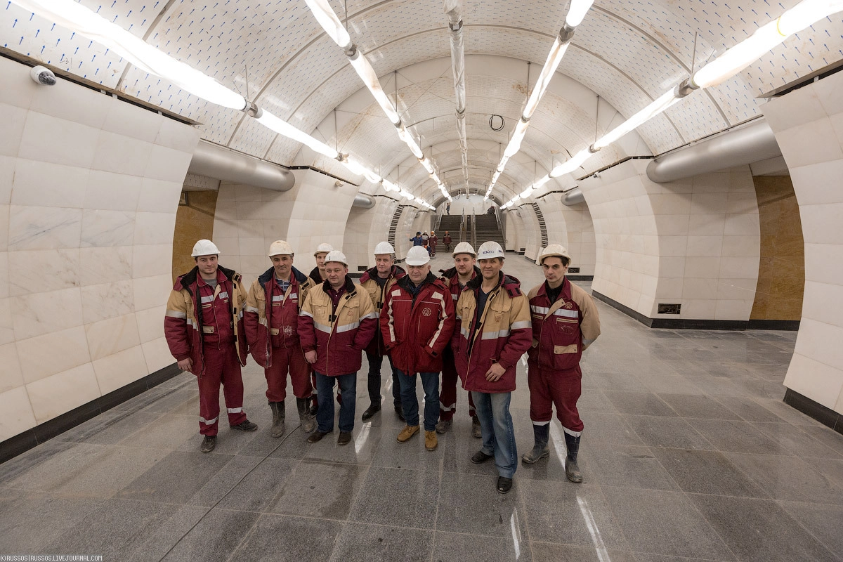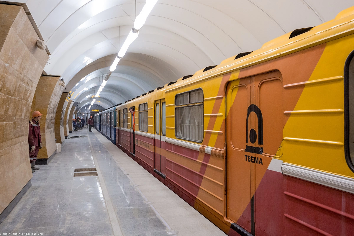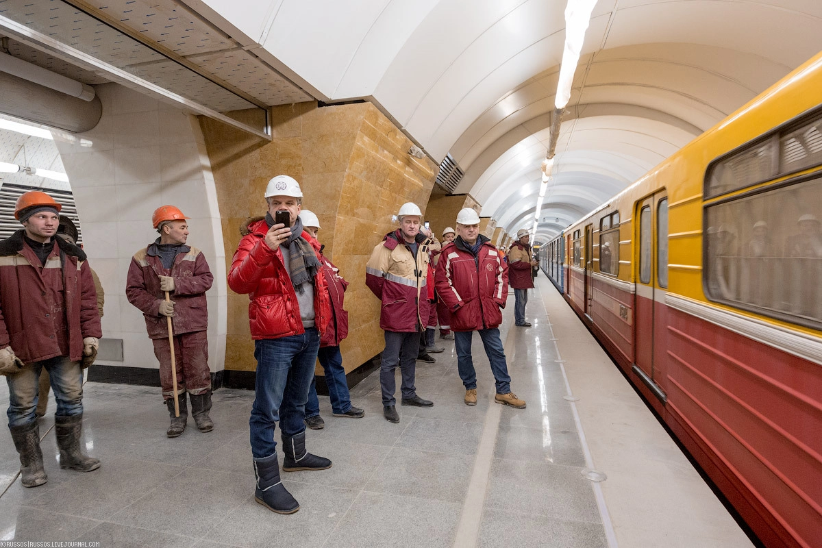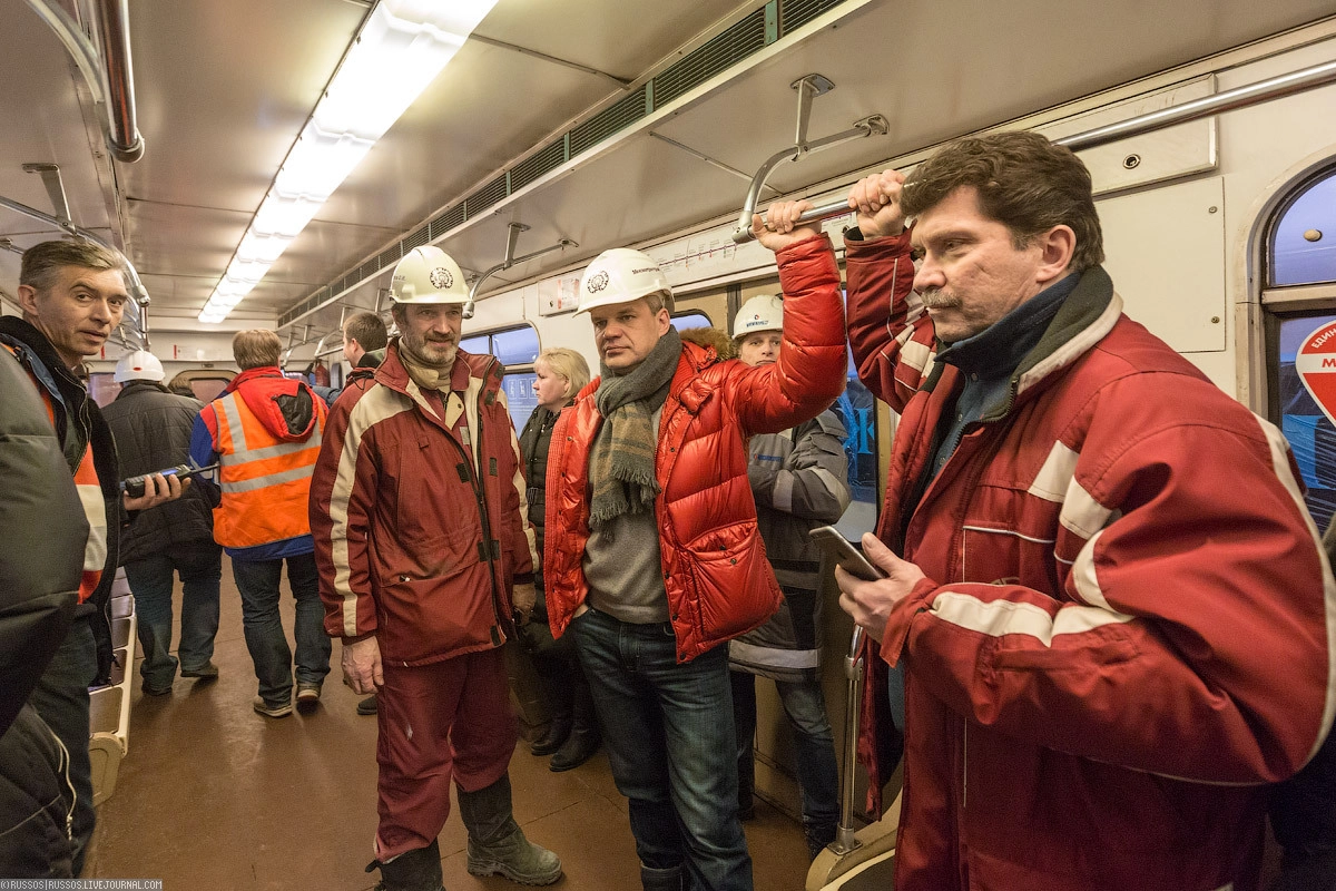 30. Метростроевцы садятся в вагон и мы едем по новым станциям.