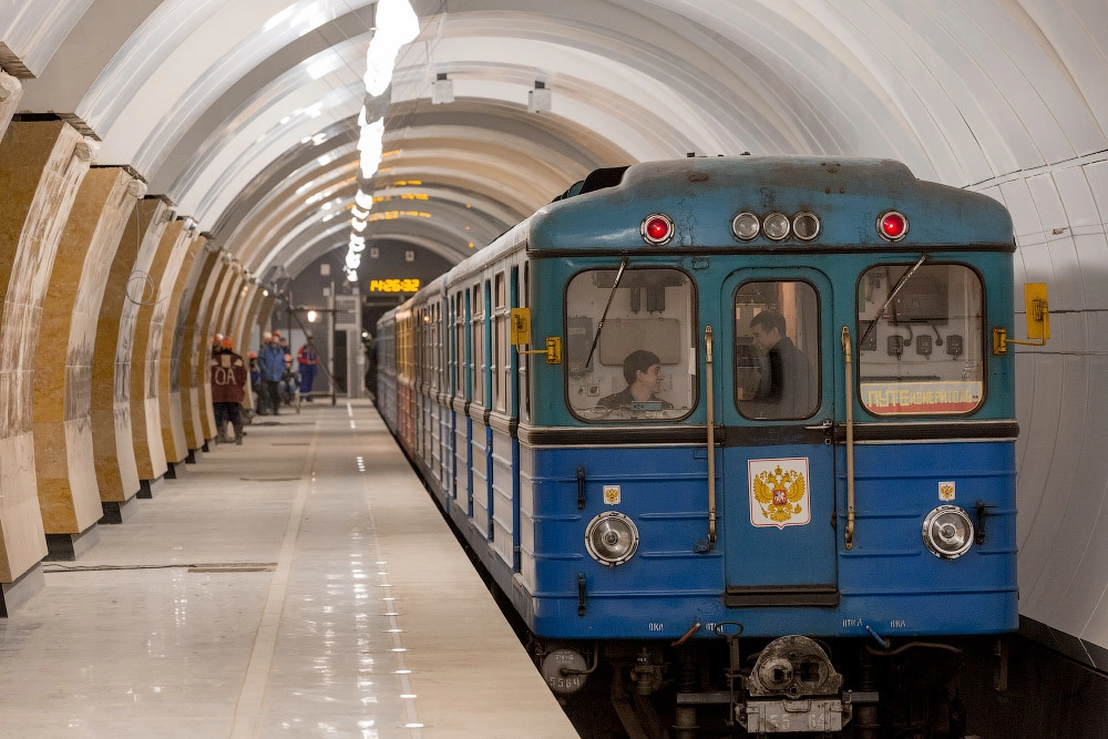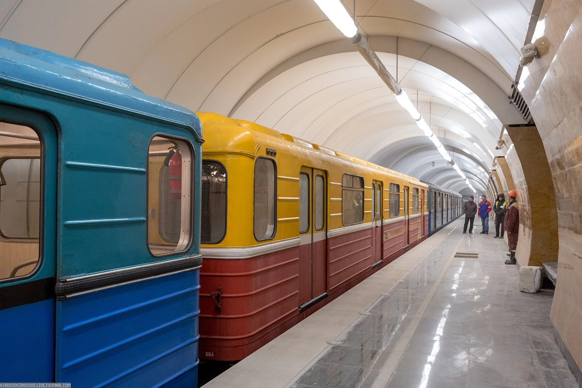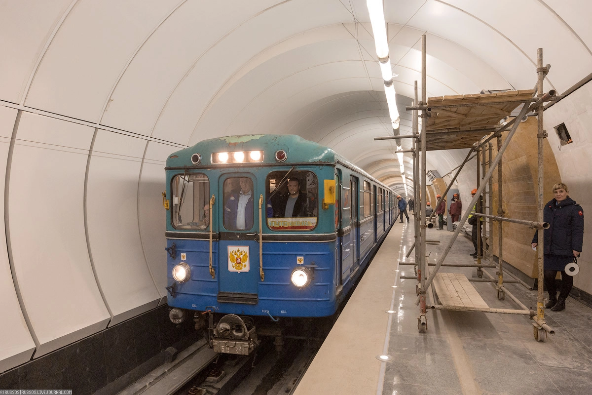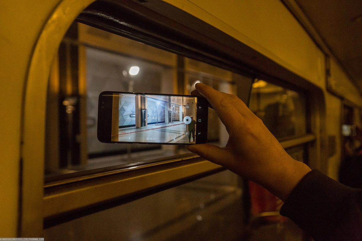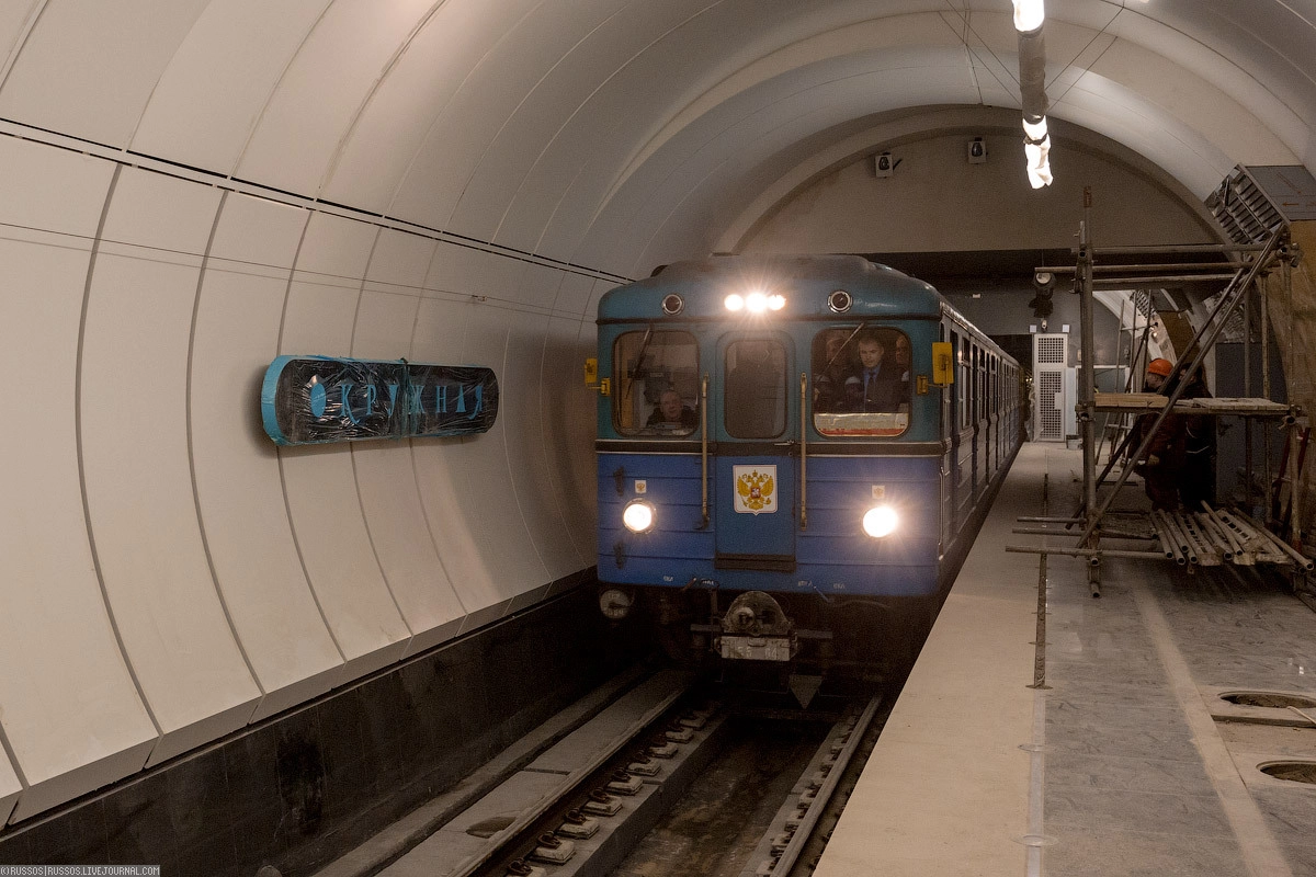 30. Метростроевцы садятся в вагон и мы едем по новым станциям.