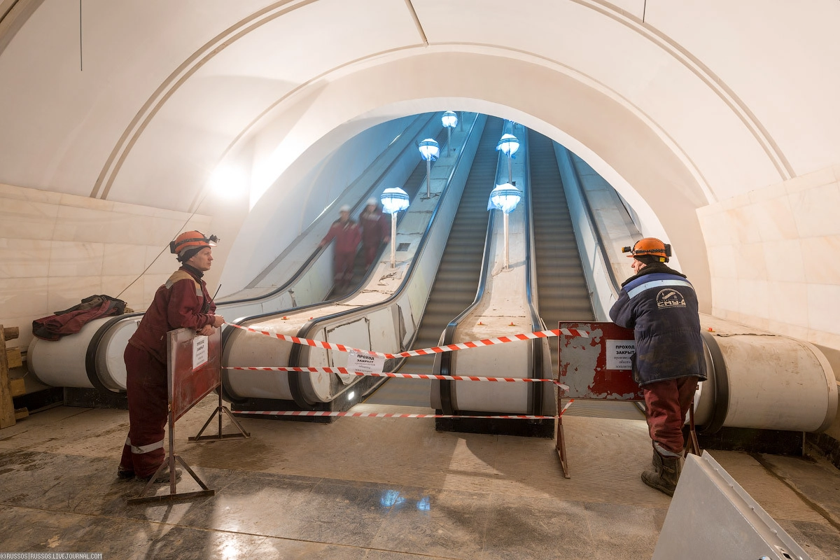 7. Идет обкатка эскалаторов. Обратите внимание на светильники!