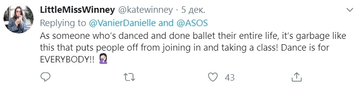 «Как человек, который танцевал и занимался балетом всю свою жизнь, отмечу, что именно такой шлак мешает людям присоединиться и взять урок! Это танец для всех!»