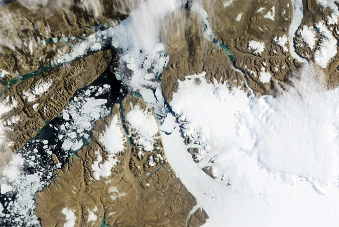 Огромный айсберг, отколовшийся от ледника Питермана в Гренландии из-за таяния льдов. © NASA