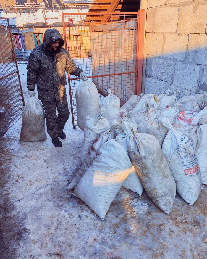 «Зимой мы ходили от дороги на лыжах туда и обратно с привязанными к поясу пакетами с мясом для питомцев и бензином для генератора. Мы построили шесть вольеров для спасённых нами собак и зажили новой, трудной, но счастливой жизнью, так непохожей на нашу предыдущую», — рассказывает Дарья в своём Instagram.
