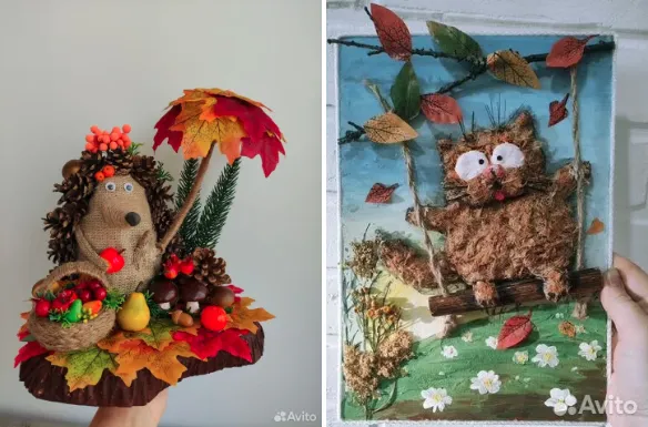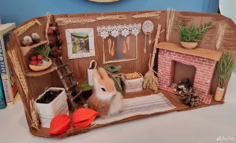 В течение учебного года в школах и детских садах проходят различные выставки и конкурсы по рукоделию из природных материалов. У многих получаются очень «продвинутые» работы. Например, на «Авито» можно найти сказочный лес с животными или домик кролика с внутренним убранством.