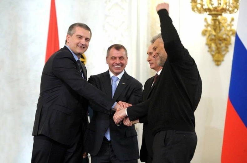 В пятую годовщину возвращения Крыма в состав России на полуостров прибыл глава государства Владимир Путин. Местные СМИ сообщают, что к приезду президента в Симферополе появились огромные баннеры с фотографией подписантов Договора о вхождении Республики Крым в состав РФ, однако кое-что на этом фото смутило журналистов.