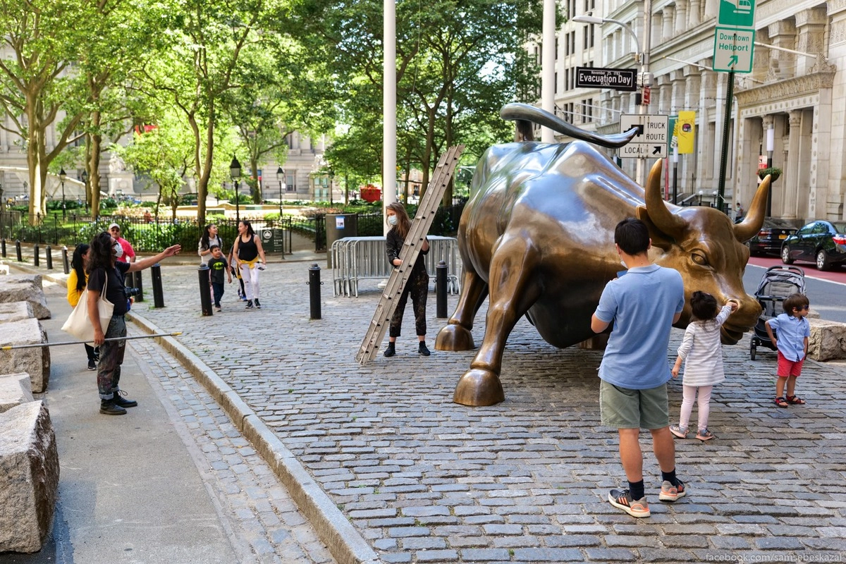 4. На фото старейший парк Нью-Йорка «Боулинг-грин», который находится в самом начале Бродвея (бычок как раз за ним). Тут когда-то стояла статуя короля Георга-III, которую скинули возбужденные подписанием Декларации о независимости граждане. Так что забаве по скидыванию памятников в США столько же лет, сколько и самой стране. Сейчас уже даже никто не вспомнит тех страстей, а короля на лошади в парке нет, хотя он мог бы больше рассказать нам о тех событиях.