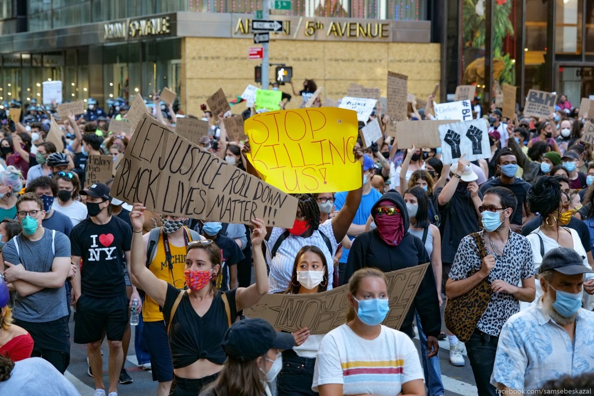 Я прогулялся по Манхэттену стараясь максимально дистанцироваться от BLM-щиков и просто насладиться городом. Получилось не очень. Стоило мне дойти до Трамп-тауэр на Пятой, как туда же прилетела куча полиции и пришла огромная колона манифестантов.