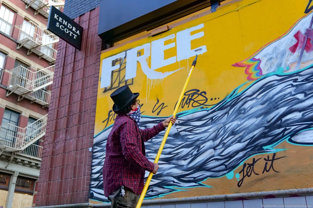 Таймс-сквер была по-прежнему оцеплена полицией, но совершенно по-идиотски. Со стороны 42-й проход был свободный, а вот сверху было не зайти. В итоге ты смотришь на людей гуляющих по площади, но чтобы к ним присоединиться тебе нужно сделать крюк в несколько манхэттенских кварталов. Про ковид, маски, социальную дистанцию и прочее все как-то резко забыли. Несмотря на то, что уличные столики можно будет выставлять только во второй фазе открытия (она должна наступить в конце месяца), они уже вовсю стоят у многих баров и ресторанов, причем те совершенно не соблюдают никаких предписаний касающихся количества людей и социальной дистанции.