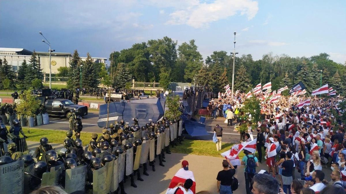 Проспект Победителей, на котором находится Дворец, перекрыт. К резиденции прибыли не менее семи бронетранспортеров; здание окружают усиленные отряды ОМОНа и подразделений внутренних войск. Кроме того, из Уручья выдвинулась колонна как минимум из восьми БМП.