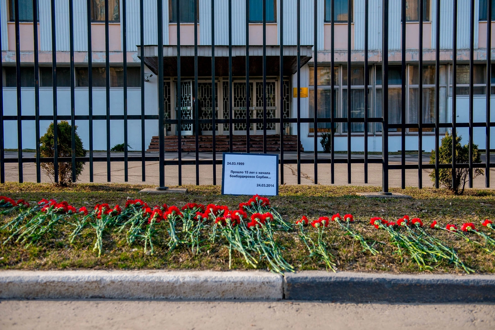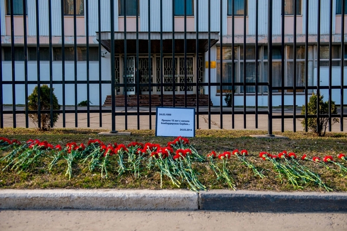 К зданию посольства Сербии в Москве возложены цветы в память бомбежек НАТО