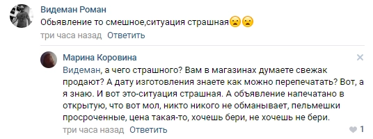 Участники обсуждения также предполагают, что при глубокой заморозке просрочка не повредит организму и что лучше продавать «честно» просроченную еду, чем продукт с фальшивой датой изготовления.