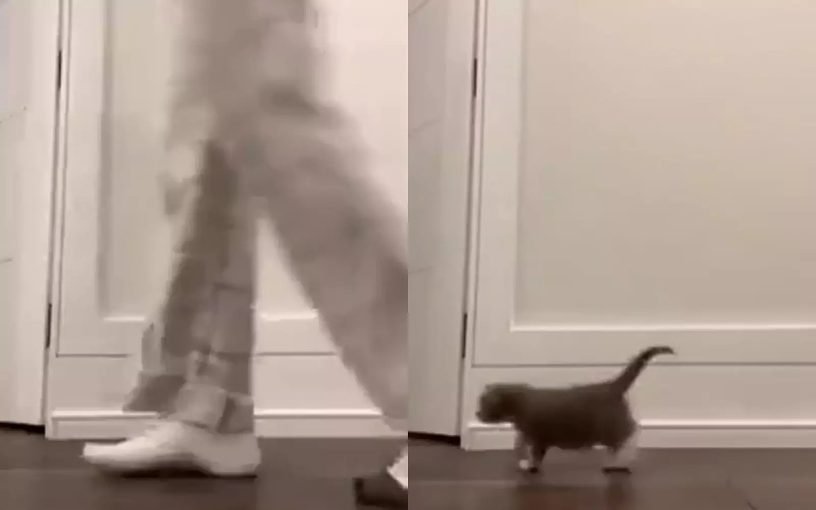 Котенок из этого видео тоже по пятам ходит за своим человеком, и это выглядит невероятно забавно. Он так смешно топает своими маленькими лапками, что просто невозможно не улыбнуться. Самый милый преследователь на свете.
