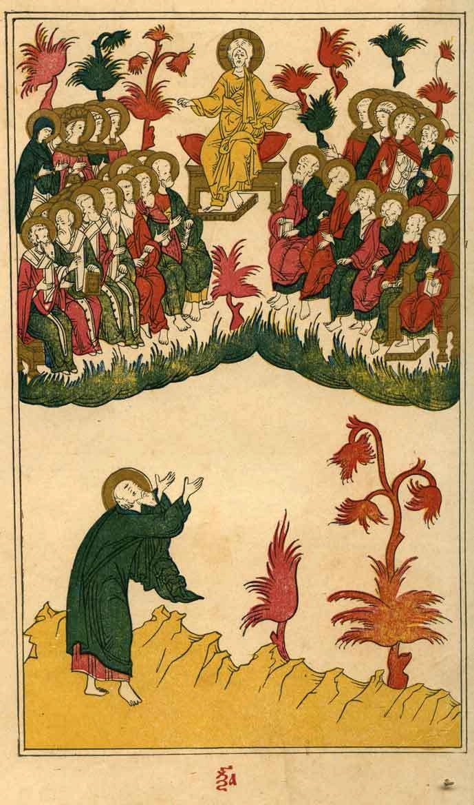 В стихе выше сразу дается пророчество, что Сатана все-таки не побежден окончательно. А вот здесь Дракон-Сатана корректно нарисован, даже с рогами и коронами.