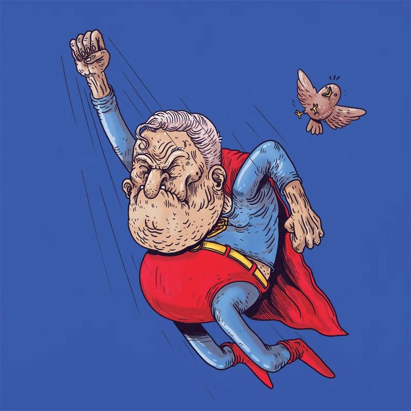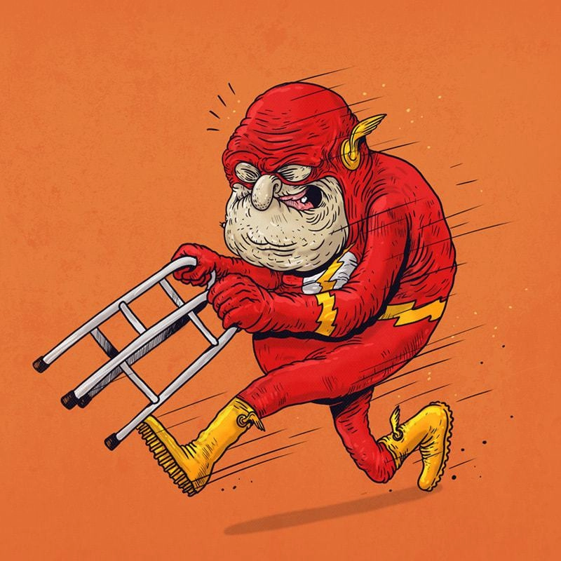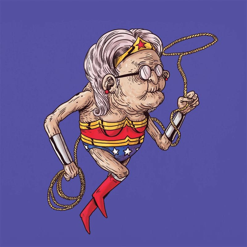 Американский художник Алекс Солис (Alex Solis) отличается не только талантом к рисованию, но и буйной фантазией. На этот раз иллюстратору пришла в голову идея изобразить, как выглядели бы знаменитые герои кино и мультфильмов, став старенькими. И судя по работам мастера, эти ребята совершенно не собираются дряхлеть и смирно сидеть на пенсии, ведь возраст им не помеха!