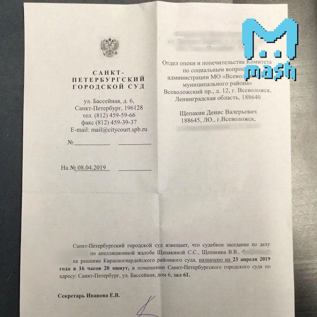 Денис Щепакин получил повестку в Санкт-Петербургский городской суд для дачи показаний по разбирательству о правах на ребенка после развода. Но есть один нюанс — Денису два года.