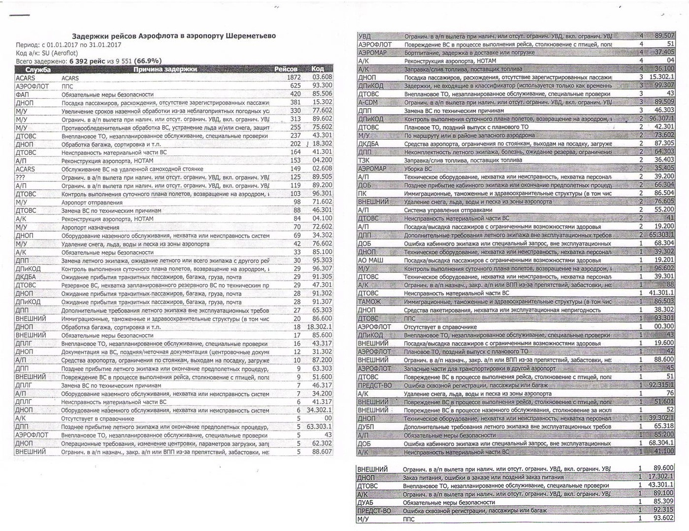 Перед глазами — отчет о причинах задержек воздушных судов авиакомпании «Аэрофлот» в базовом аэропорту Шереметьево.