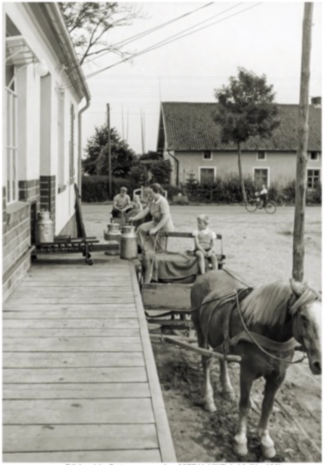 А начиналось все где-то тут и, конечно, с молока. В начале двадцатого века в Тильзите уже было несколько десятков производителей сыра и все они предъявляли очень высокие требования к молоку. На этой фотографии запечатлен как раз процесс доставки свежего молока на сыроварню.