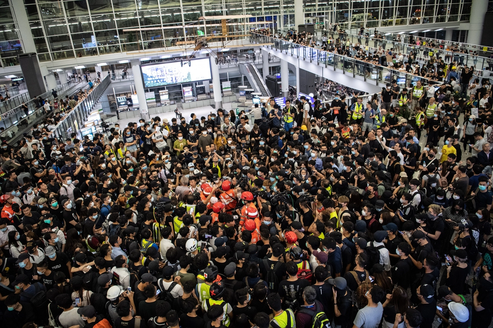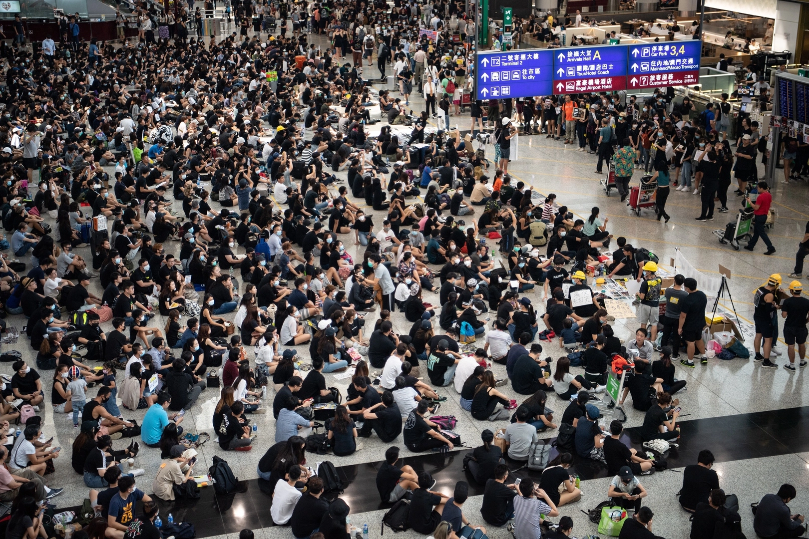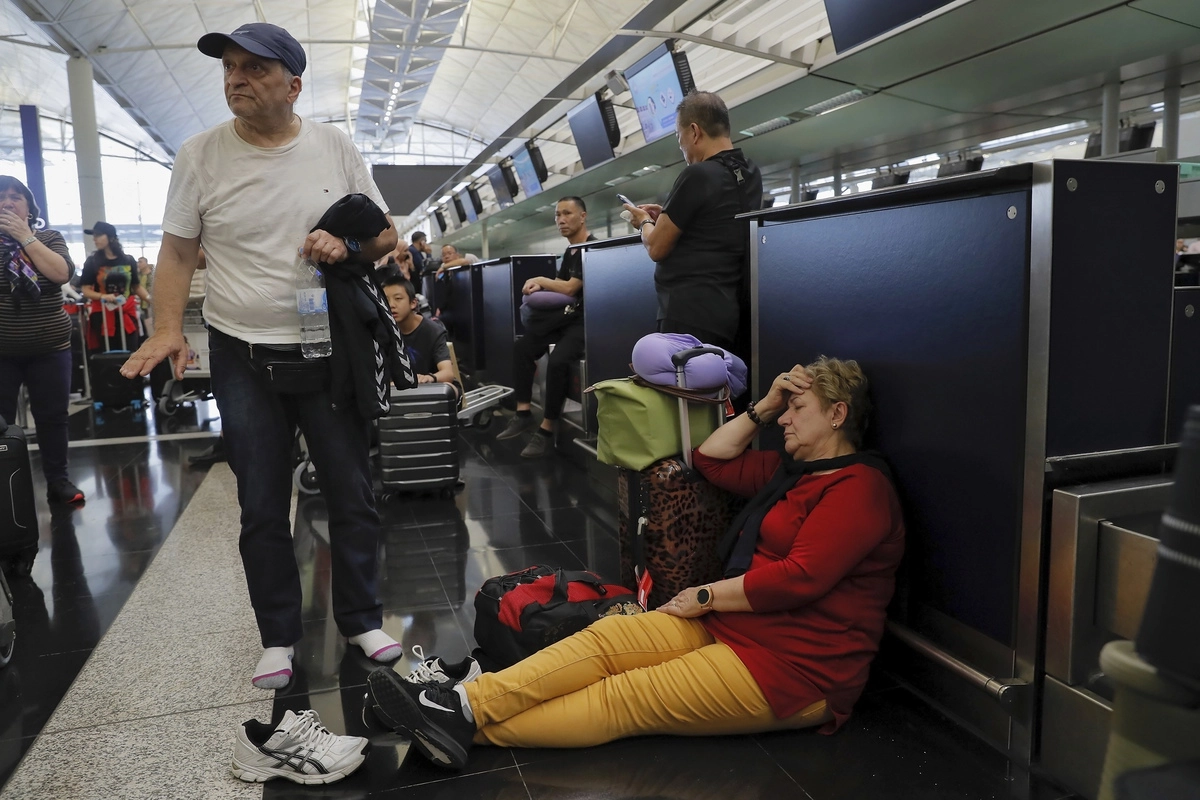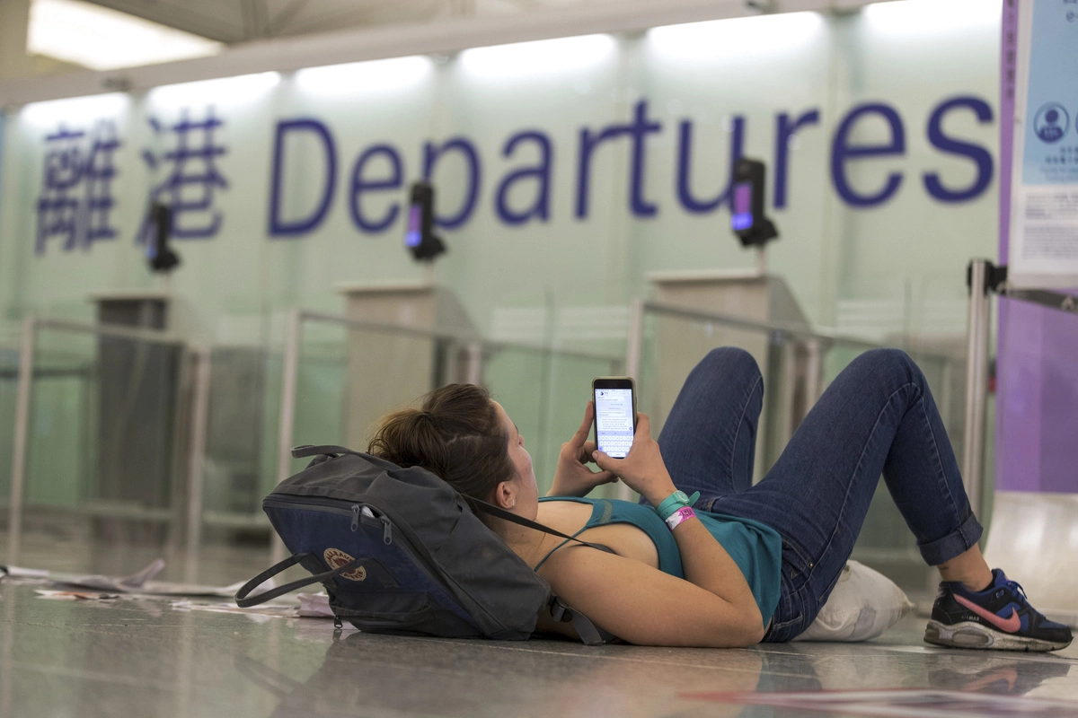 В понедельник, вторник и среду администрация аэропорта Гонконга вынуждена была отменить множество рейсов из-за массовых акций протеста. Тысячи демонстрантов оккупировали залы прилета и вылета, нарушив тем самым работу воздушной гавани.
