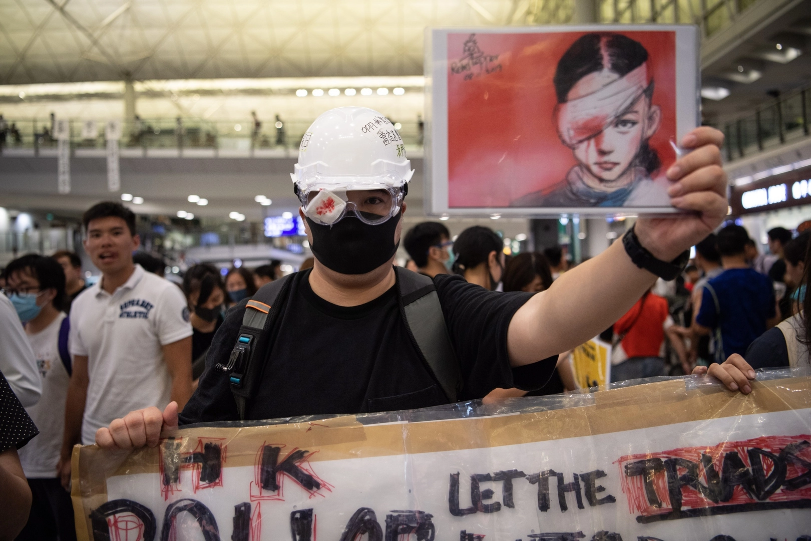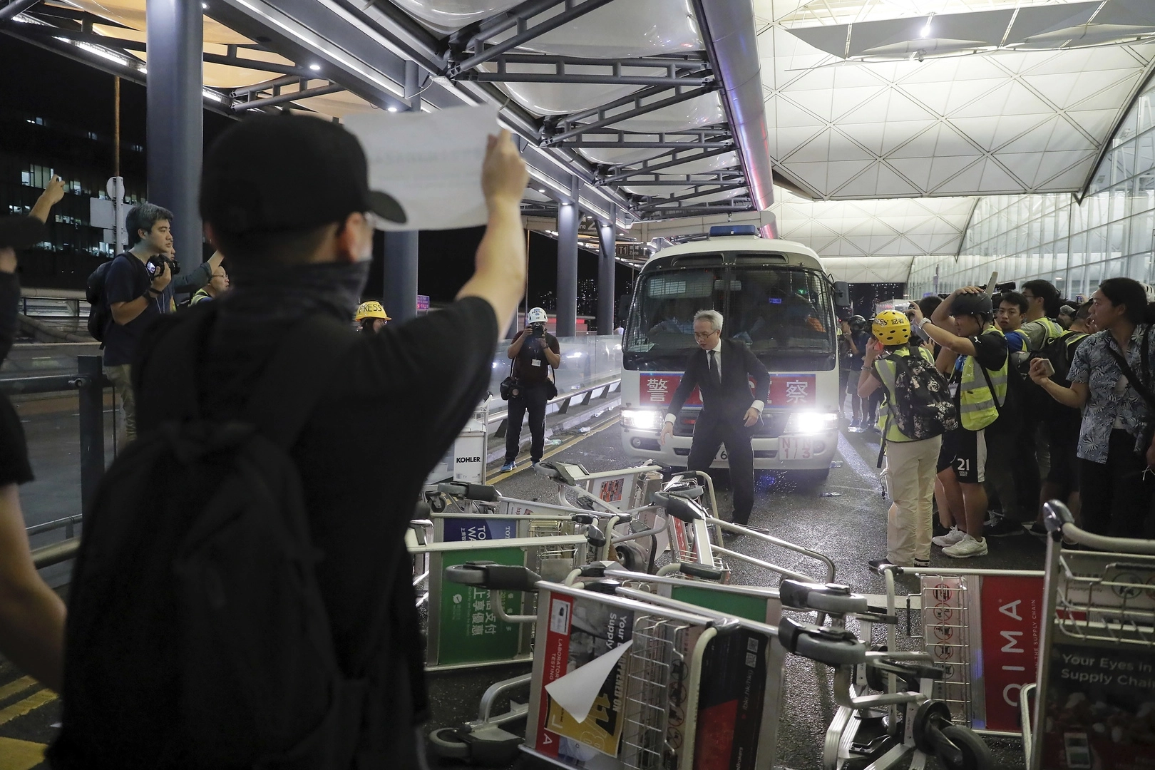 Как демонстранты дрались с полицией в аэропорту Гонконга: фоторепортаж