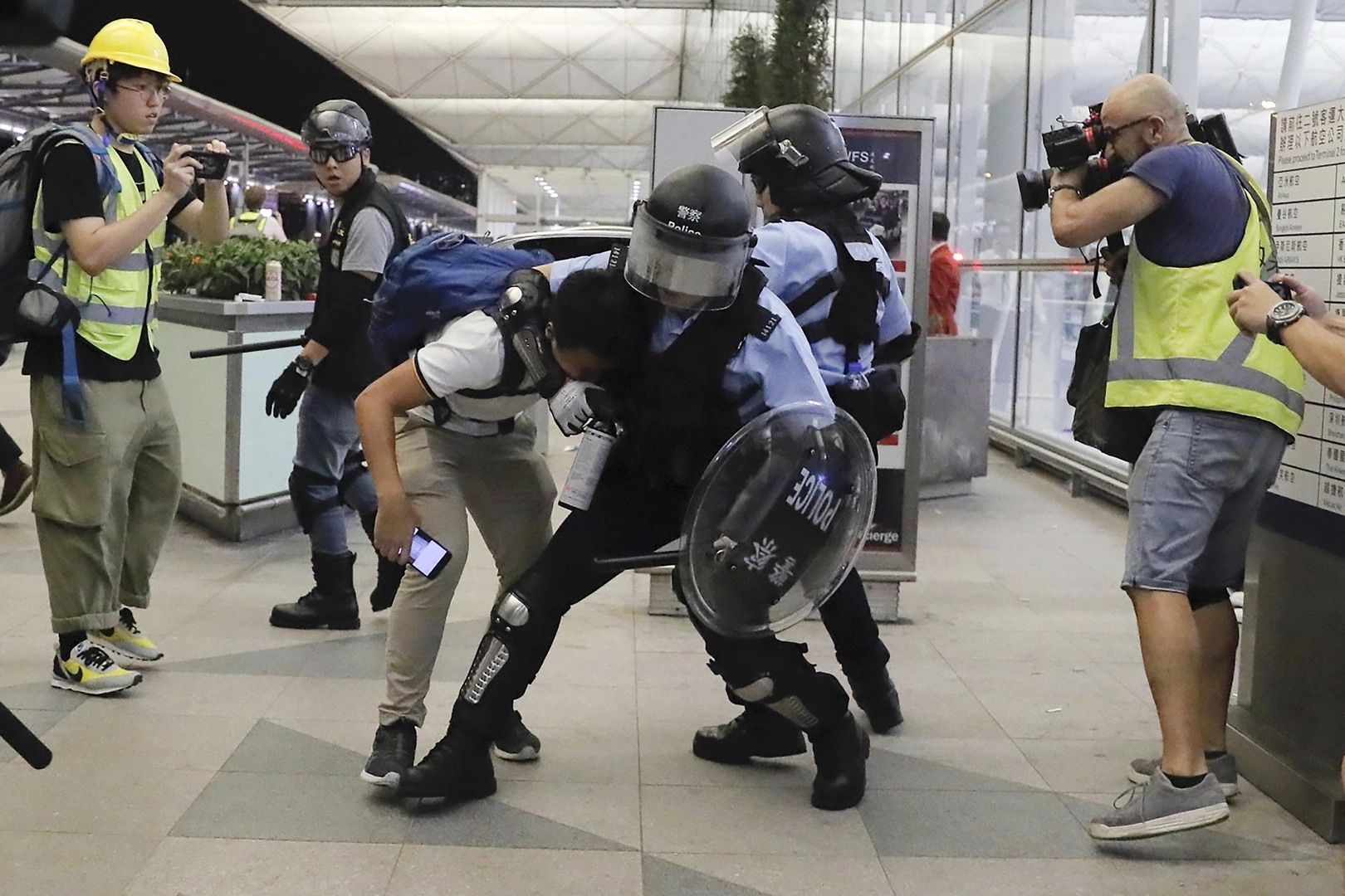 В среду в аэропорту Гонконга произошли жестокие столкновения с полицией.
