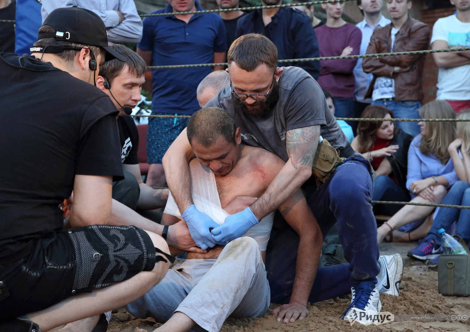 В очередной схватке один из соперников получает серьёзную травму руки, возможно перелом. И не потому, что был слабее или менее техничен, а потому, что плохо разогрелся перед боем.