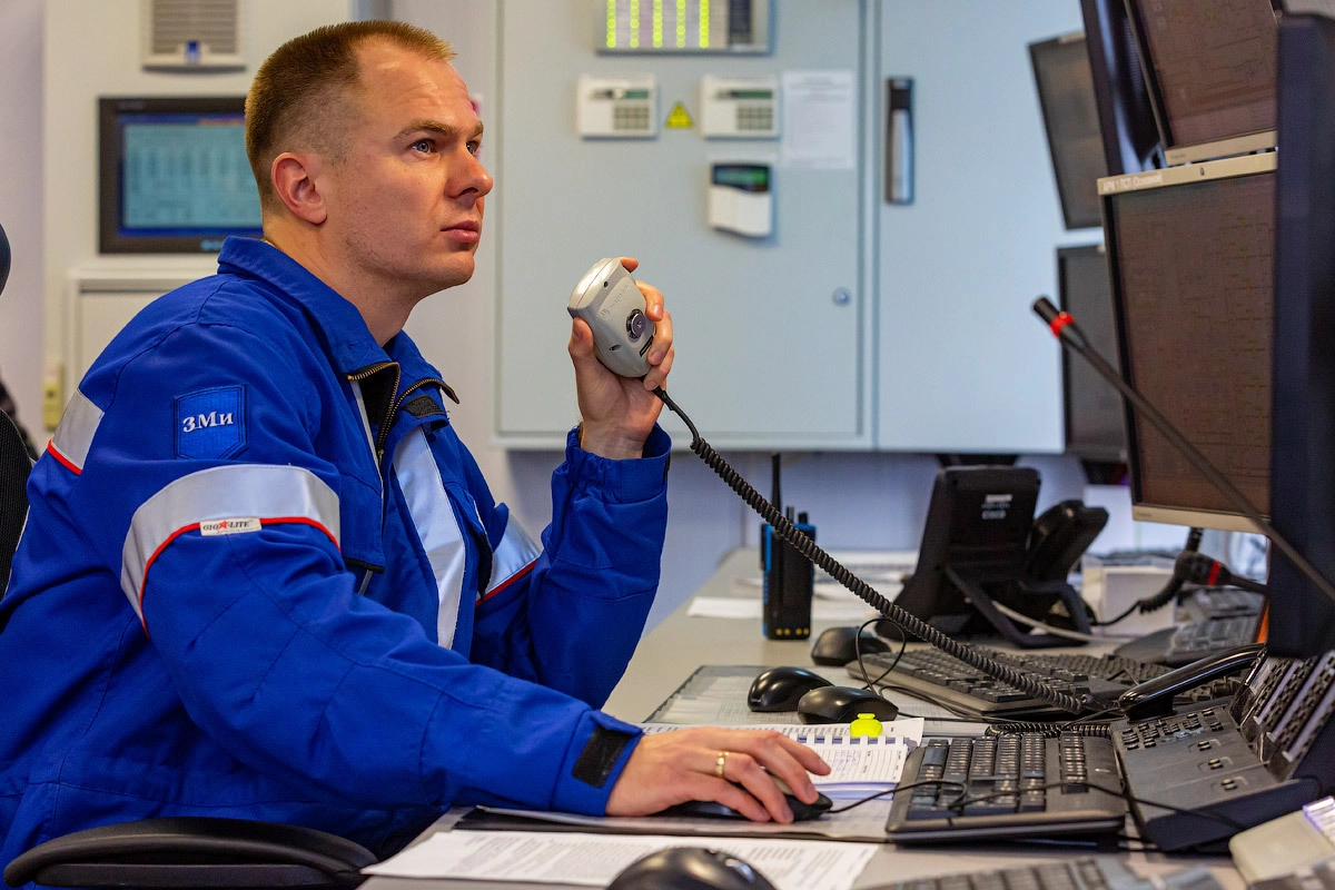 Начальник смены Сергей Большаков готовится руководить процессом отгрузки нефти на танкер.