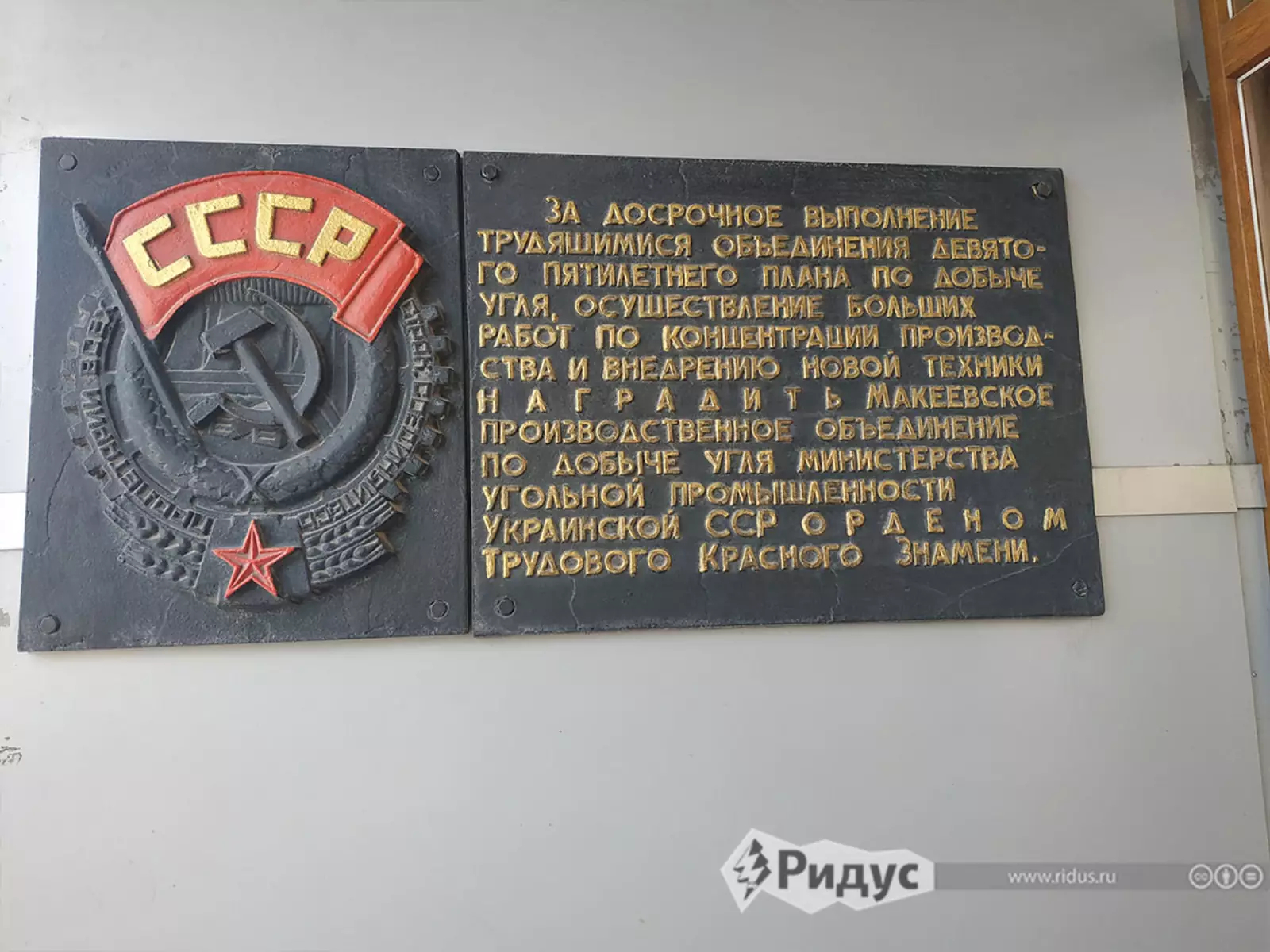 Здание администрации предприятия «Макеевуголь» находится на главной площади города, у крыльца висят памятные доски, посвященные героям шахтерского труда, еще периода СССР.