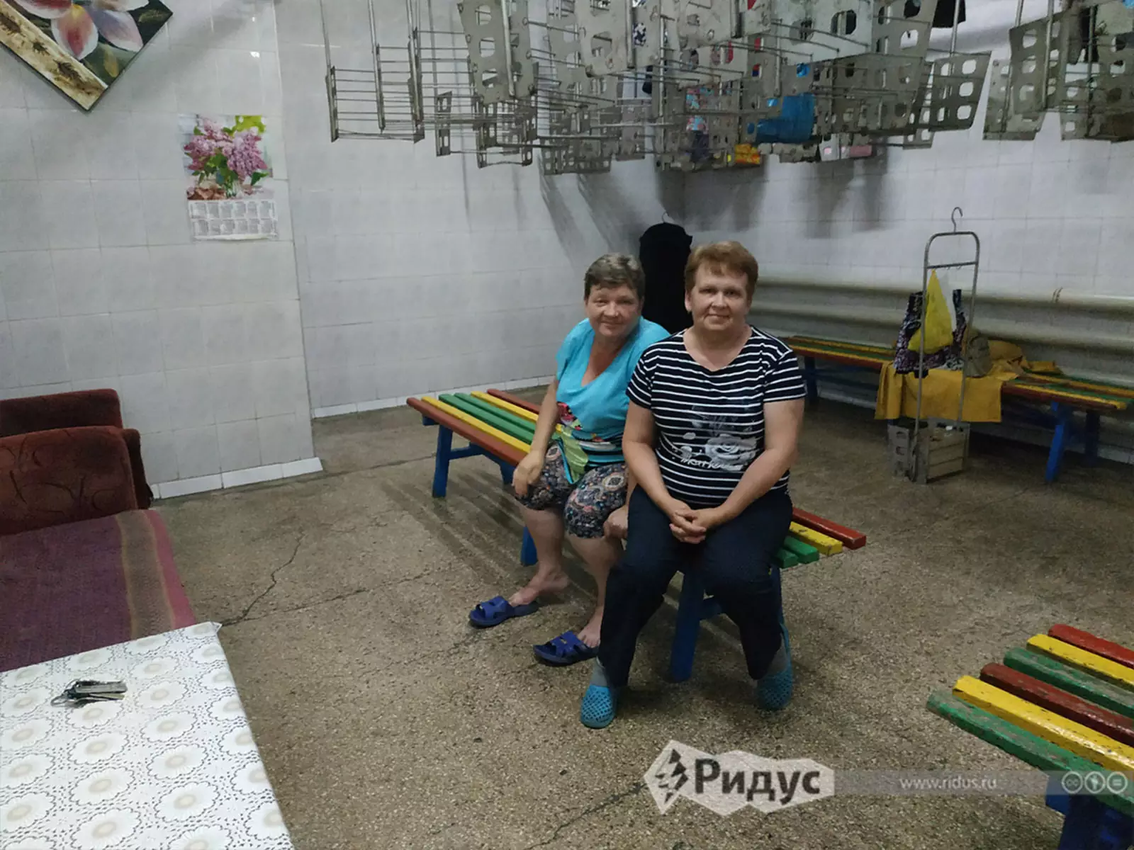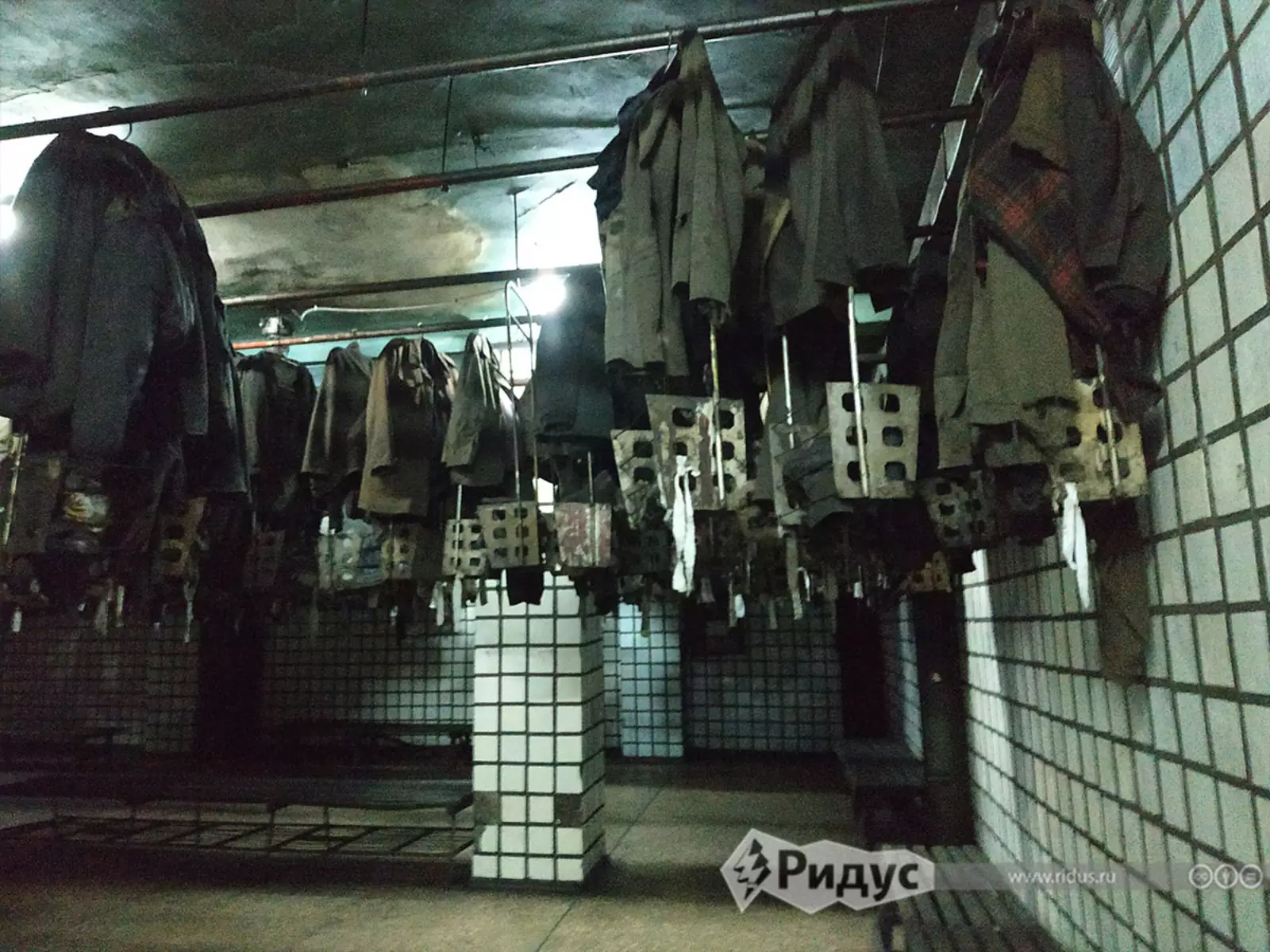 Посещаем женскую баню и раздевалку, где застаем двух обаятельных тетушек — Оксану и Валентину, уборщицу и банщицу. Дамы рассказывают, что женщины, конечно, тоже работают под землей — медики, маркшейдеры, геологи; впрочем, это видно по одежде, оставленной в раздевалке в специальных подвесных контейнерах. Хозяйки этих гардеробов сейчас находятся в сотнях метров под поверхностью. Оксана и Валентина говорят: «У нас все хорошо… Если б еще не война эта клятая, да если б зарплату вовремя платили, можно было бы и жить».