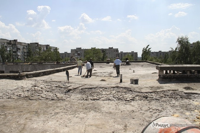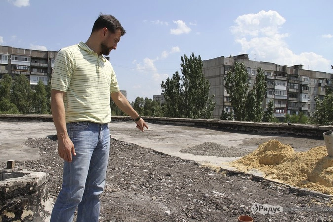 О судьбе школы № 52 в Горловке мы уже рассказывали. Если коротко, она сильно пострадала от арт-обстрела: в крышу прилетела здоровенная мина. Москвич Николай Ханин решил за свой счёт отремонтировать к 1 сентября единственную русскоязычную школу в городе. Сумму затрат Николай скромно умалчивает, не хочет делать себе рекламу на чужом горе, но речь идёт о миллионах. Ход строительства он контролирует лично: гоняет в Горловку минимум два раза в месяц. Вот и сейчас, аккурат к годовщине «кровавого воскресенья», Николай приехал в ДНР поглядеть, как обстоят дела за месяц до Дня знаний.