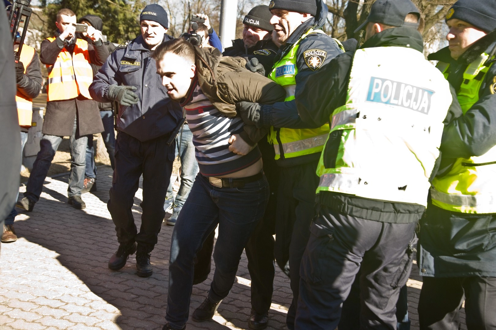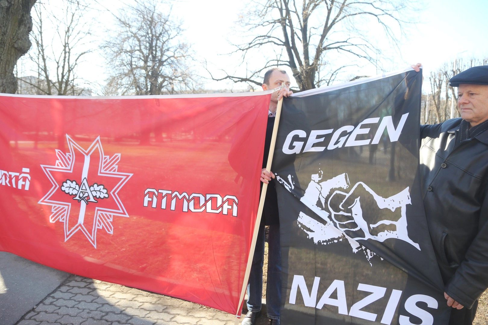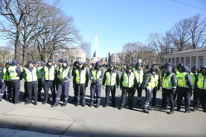 Так, за несколько минут до начала «марша недобитков» латвийские полицейские задержали двоих представителей Латвийского антифашистского комитета с плакатами, на которых изображены жертвы фашизма.