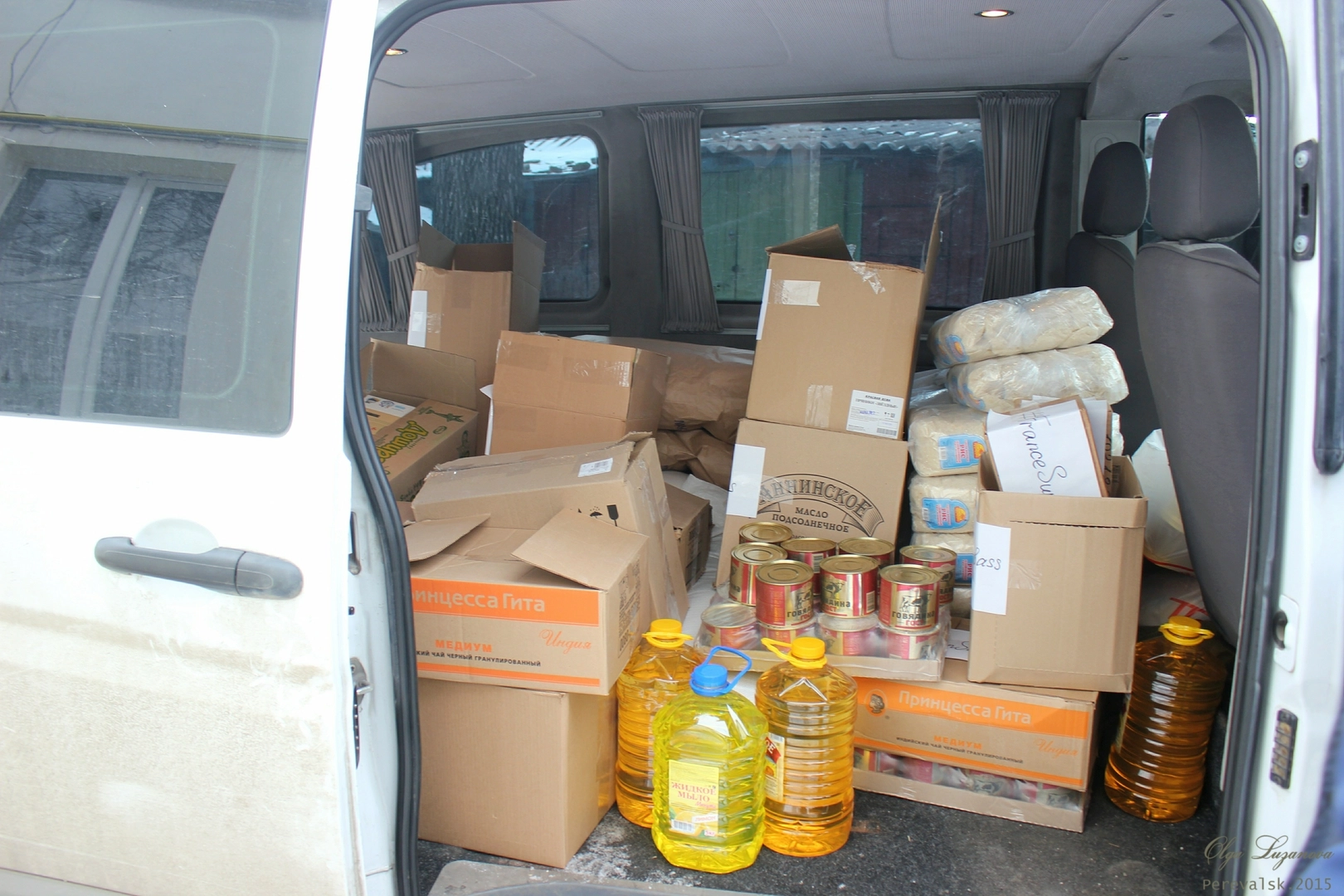 По информации из интернета, во всём регионе особенно большая проблема – достать детское питание. Поэтому, конечно, именно данная провизия и стала приоритетной в нашем списке. Мы также привезли масло, чай, сахар, муку, бакалею, сгущенку, тушенку и крупы. Кроме того, были доставлены подгузники, мыло, шампуни, стиральный порошок, зубные пасты и прочие средства личной гигиены. Общая потраченная сумма составила 120 981 рубль.