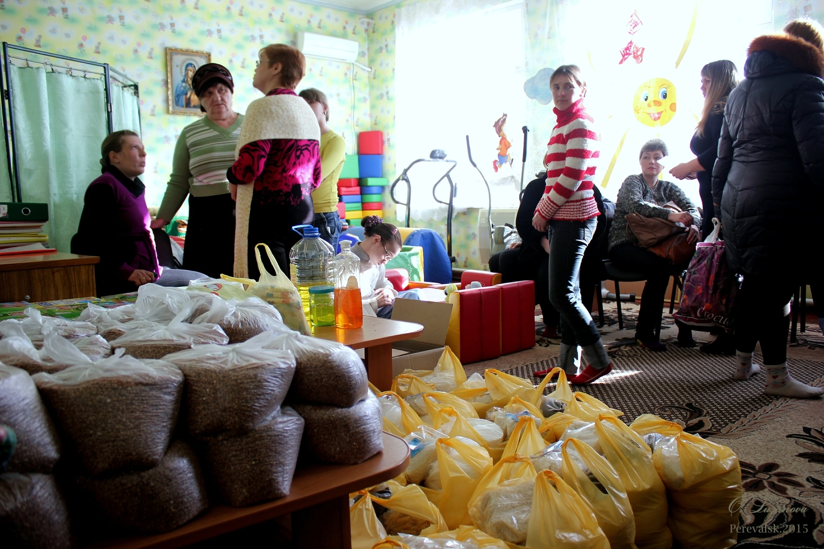Весь груз мы разделили поровну и, при содействии перевальской комендатуры, доставили его в две организации города Перевальска (ЛНР), а именно – в школу-интернат, в которой на данный момент размещены более 160 беженцев, и в Перевальский территориальный центр социального обслуживания (центр реабилитации для детей-инвалидов в бывш. школе №2).
