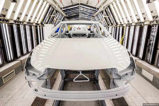 На заводе в Санкт-Петербурге нет штамповочных цехов с огромными многотонными прессами, создающих микроземлятресения. Штампованные детали для цеха сварки на завод поставляются из Евросоюза и Кореи. В России штамповочное производство локализованно лишь частично.