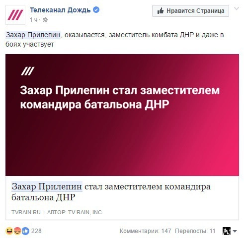 Реакцию на новость о батальоне Прилепина продемонстрировали некоторые российские СМИ. Телеканал «Дождь», например, в социальных сетях манерно удивился такой новости. Издание «Сноб» традиционно решило сострить.
