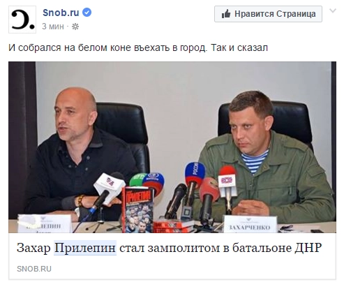 В Сети обсуждают новость о том, что российский писатель Захар Прилепин собрал в Донецкой Народной Республике батальон и занял в нем должность замполита. Сторонники публициста высказывают ему горячую поддержку, а противники желают смерти. Официальные лица комментируют новость осторожно и по большей части нейтрально.