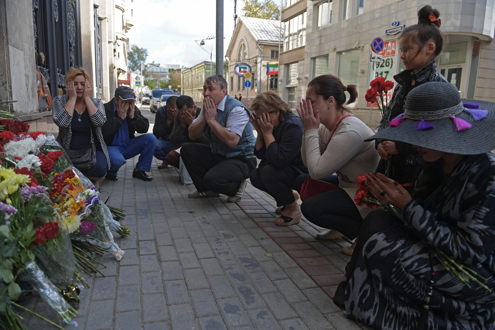 Между тем люди приносят цветы к посольству Узбекистана в Москве. Посольство также открыло книгу соболезнований. Запись в ней может оставить каждый желающий.