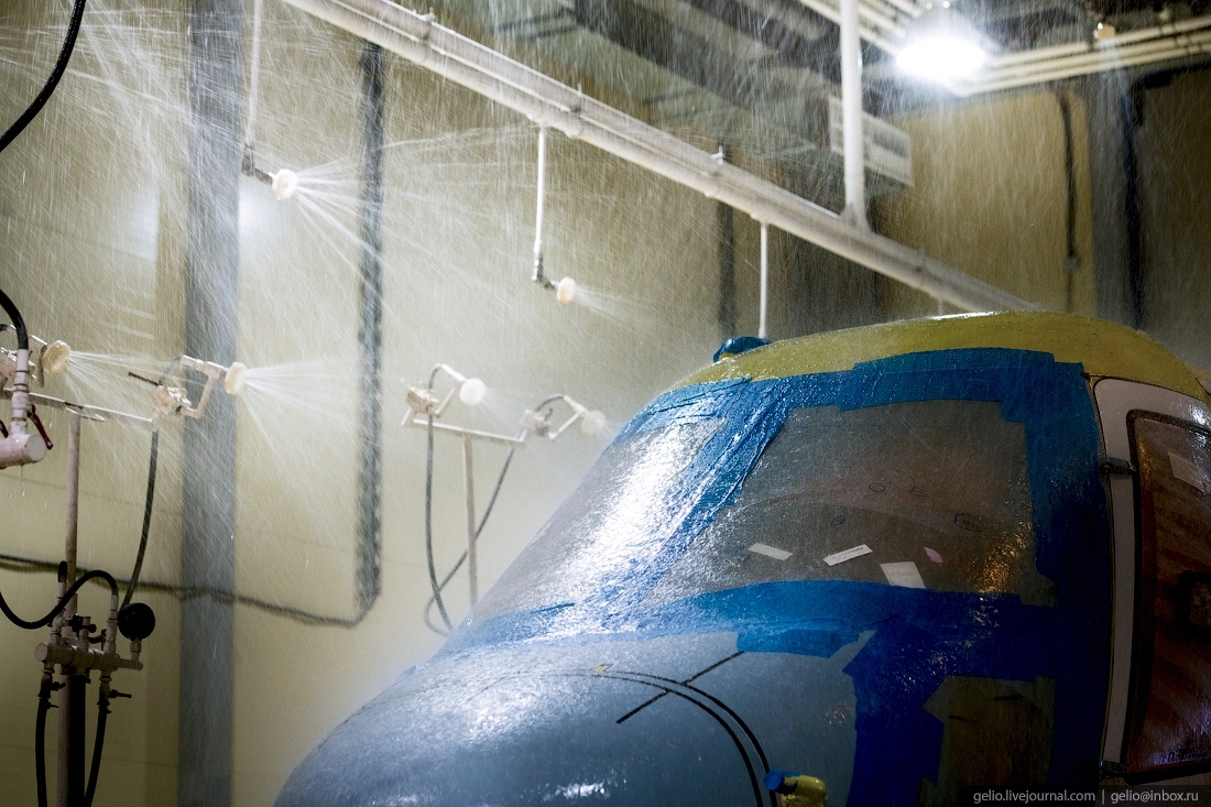 Под интенсивный «душ» вертолет помещают для проверки герметичности и влагозащищенности кабины.