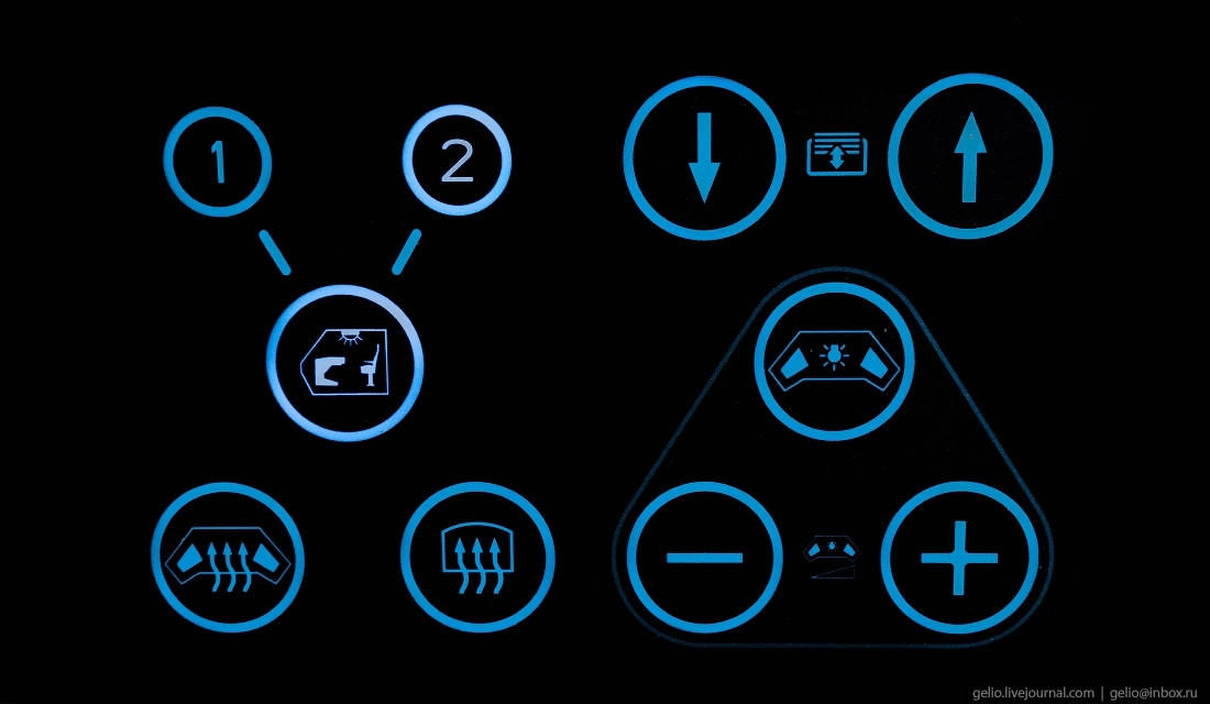 Панель управления подсветкой пульта, подогрев кресла машиниста и подогрев пульта в зоне рук. Количество кнопок на панели в новом поезде сократилось почти вдвое за счет появления широкоформатного сенсорного монитора. Доступ к пульту управления, равно как и в кабину, осуществляется только при помощи смарт-карт. В кабине установлены 4 камеры видеонаблюдения.