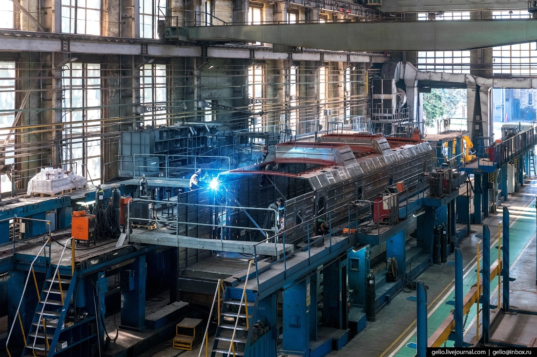 У завода есть собственное литейное производство. Оно нужно для того, чтобы делать заготовки и литые детали для электровозов. Температура расплавленного металла может достигать примерно 1500 градусов.
