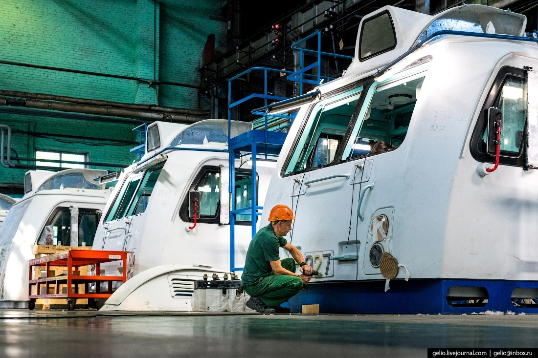Работники железнодорожного цеха. Они забирают вагоны с грузами и распределяют по участкам выгрузки, принимают участие в сборке узлов и агрегатов, а также подают на обкатное кольцо новые машины.