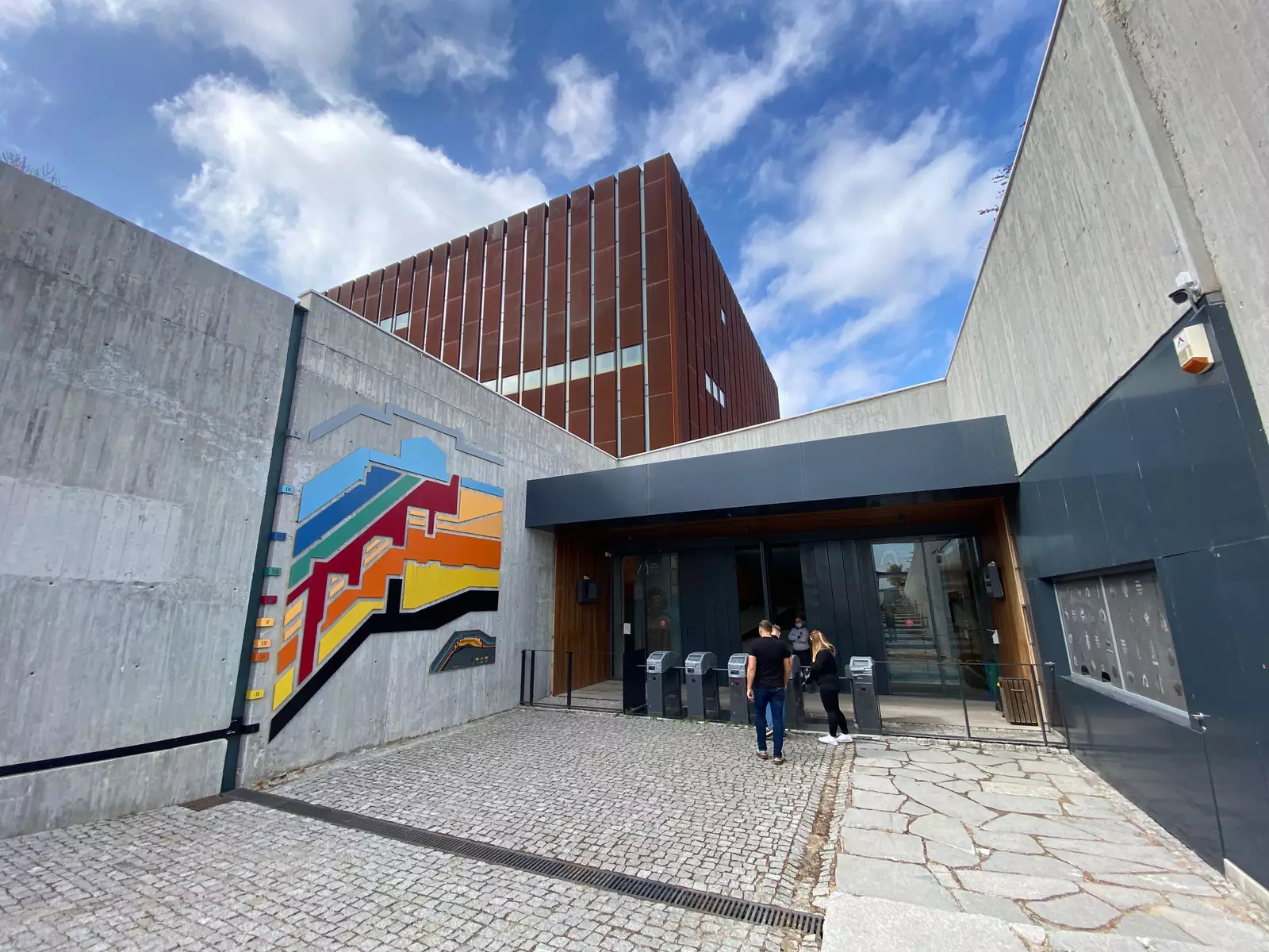 Просто крутецкое здание из бетона и листов ржавого железа, опоясанное снаружи и внутри пандусами для подъема и спуска.