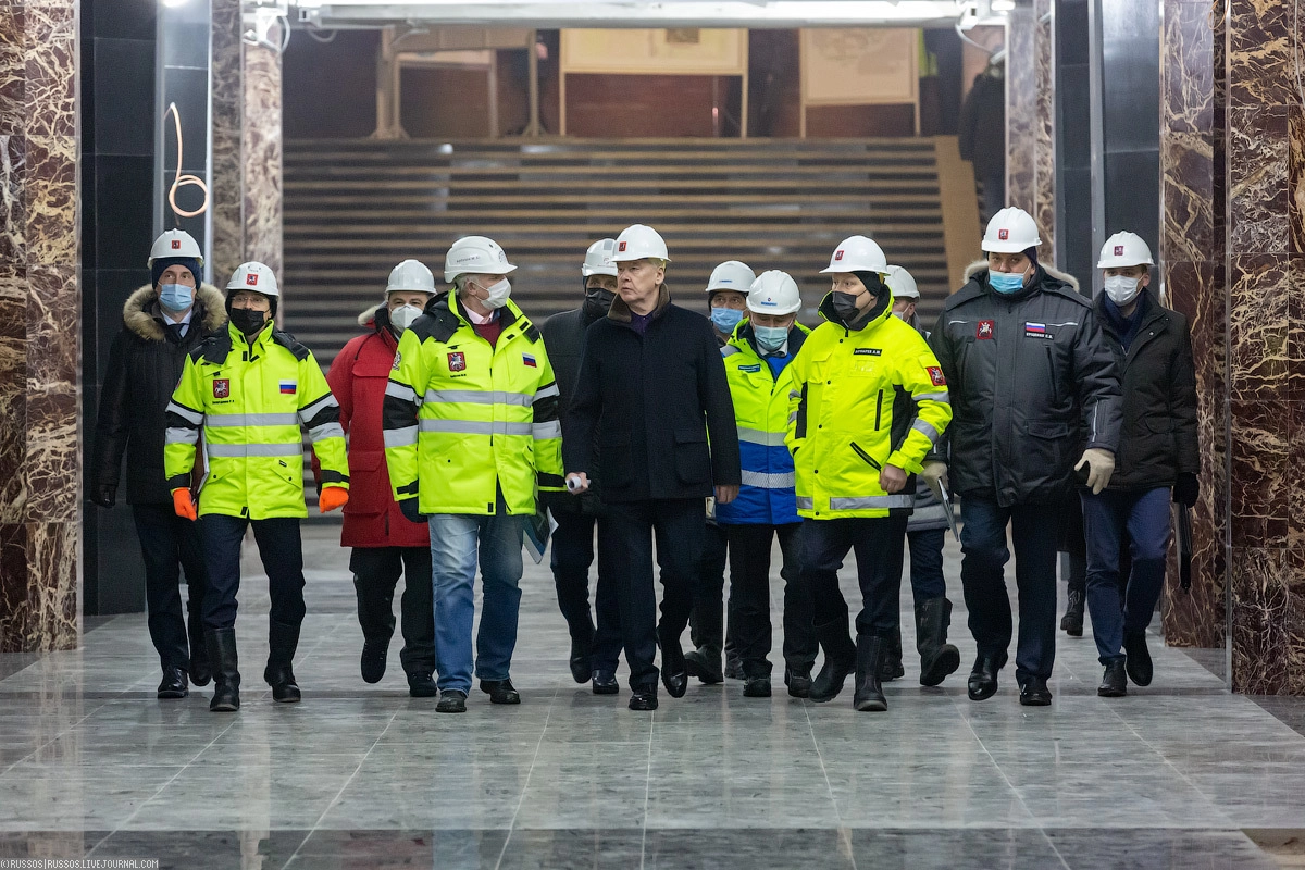 7. Мэр Москвы Сергей Собянин осматривает станцию. Рассказывает Михаил Арбузов, первый заместитель генерального директора Московского метростроя.