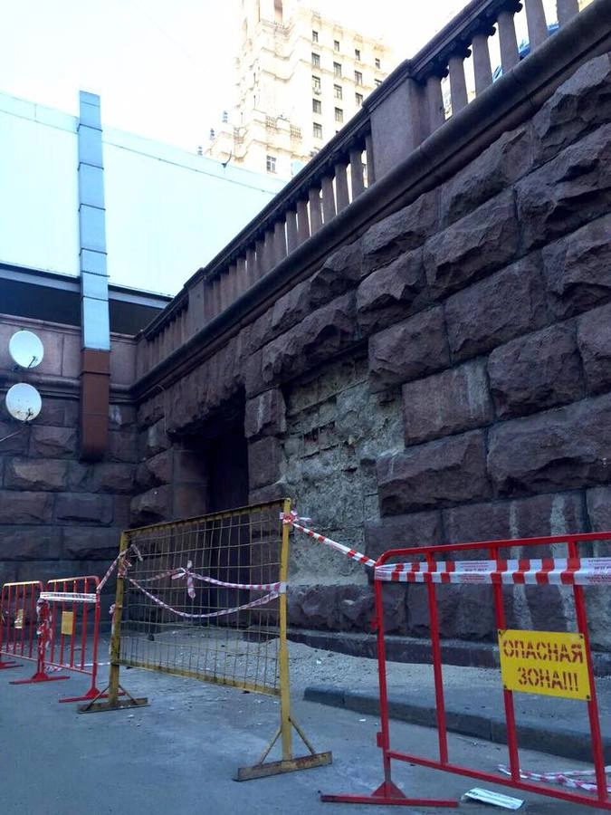 Почему снесли большинство торговых павильонов, но это ужасное заведение, портящее вид и уникальный исторический стилобат, осталось нетронутым?