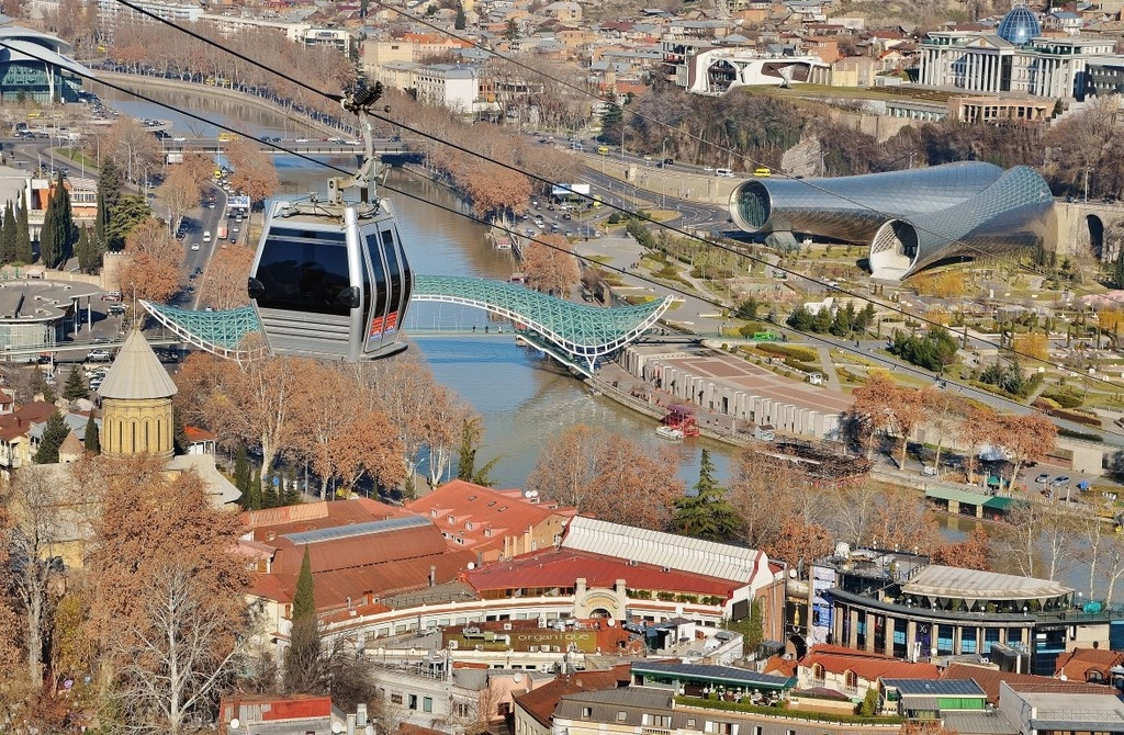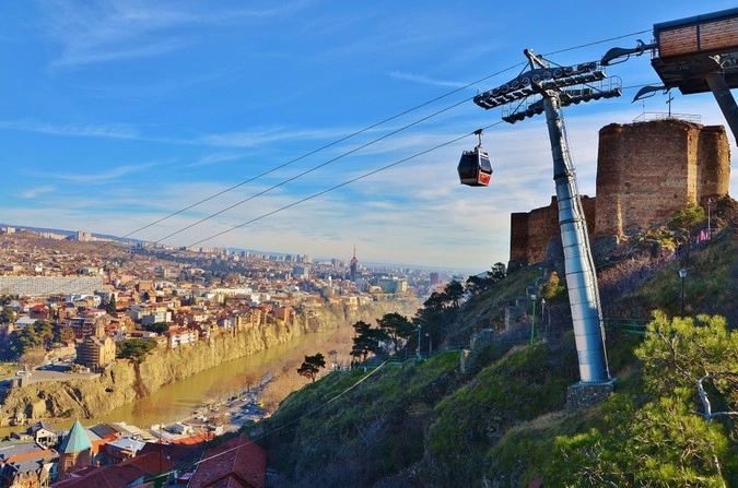 В Тбилиси даже не одна канатная дорога, а две: одна к крепости Нарикала, а вторая в районе Ваке (западная часть города, минут сорок пешком от исторического центра), от одноименного парка Ваке до Черепашьего озера, что на горе. Плюс, фуникулер на гору Мтацминда, это там где телебашня —