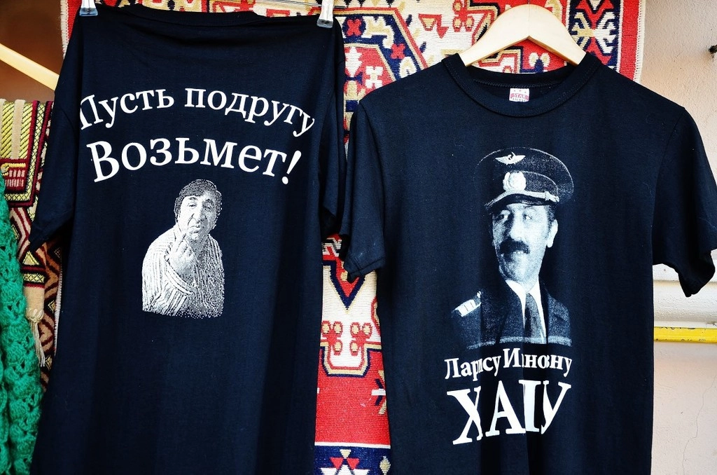 Ух ты, вот такую футболку я бы приобрел! Сколько? Десять. Порылся в карманах, достал 10 лари ($4), протягиваю. Тетенька смотрит на меня, словно на инопланетянина «10 долларов!». Вон оно как, разводка для туристов, это с каких пор Грузия перешла на американские доллары. Ухожу, решив для себя, что лучше лишний раз гляну «Мимино» на Youtube, чем платить за всякую ерунду втридорога.