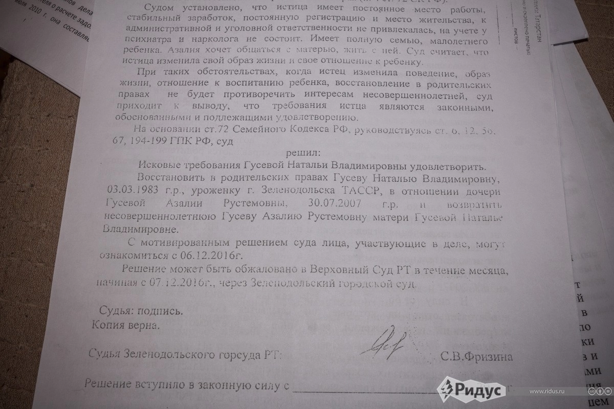 Корреспондент «Ридуса» не стал делать скоропалительных выводов, почему администрация Зеленодольского района всячески содействовала возвращению девочки обратно в асоциальную среду. Так же остается вопрос: если в отдельных случаях власти абсолютно не считаются с людьми и их проблемами, не получит ли подобный опыт массовый характер?