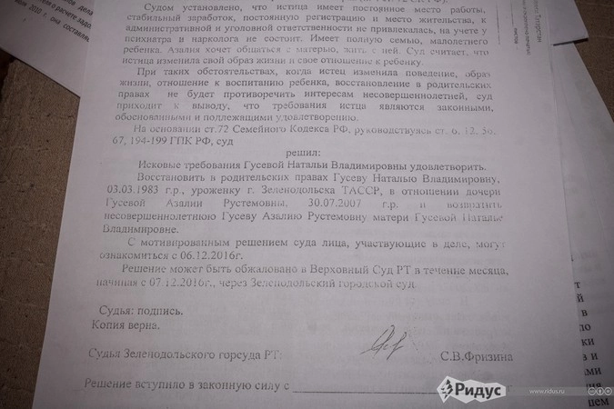 — Они поступили хитро, вызвали к себе Наталью и попросили её написать заявление на восстановление прав материнства. Всё это время они говорили ей как правильно себя вести, что говорить на суде и тому подобное.