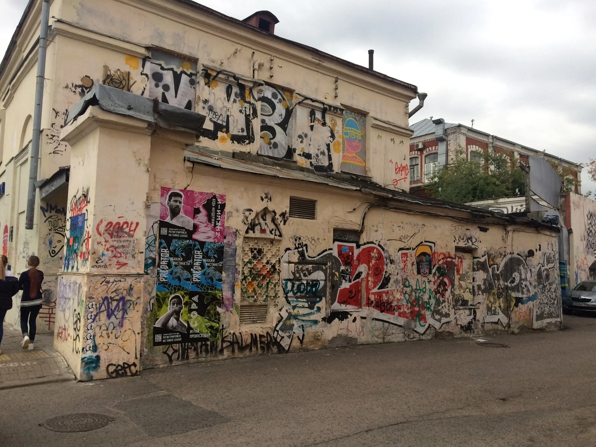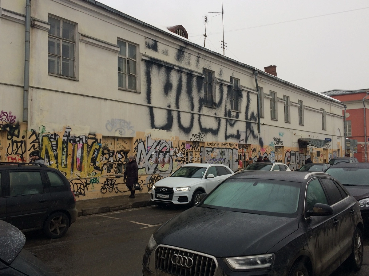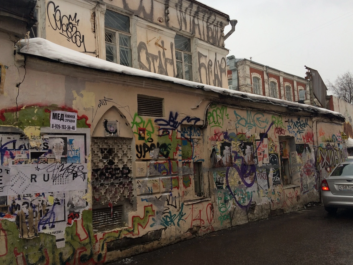 Надо отметить, что красивые граффити: портреты, пейзажи или просто что-то оригинальное на стенах серых зданий Москвы — это, я считаю, хорошее явление. Но когда какие-то люди от недалёкого ума рисуют кривые каракули и писаются от счастья в свои штаны в связи с этим, это вполне тянет на сигнал болезни, которую надо лечить принудительно в определённых местах.